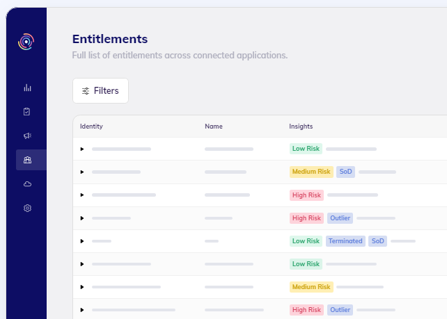 Leverage AI to automate discovery & risk prioritization of entitlement sprawl. Streamline access reviews & certifications across the public cloud and SaaS landscape. Connect all third-party integrations to the BalkanID dashboard. Integrations are supported for the most commonly used SaaS apps. Single pane of glass for coarse and fine-grained entitlements, as well as outliers across SaaS and public cloud environments. Simplify the access review and certification process across the SaaS and public cloud landscape. Leverage data science and machine learning to provide visibility into entitlement risks across SaaS and public cloud environments. Discovery and prioritization of entitlement risks. Discover, normalize and attribute entitlement taxonomy and associated data sets, to ensure that while an access review can be high-level there is still detailed data (permissions, roles, groups, etc.) to support certification actions.