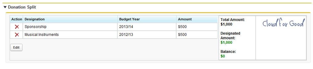 The Cloud for Good Donation Split application is a free fundraising add-on designated specifically for nonprofit organizations and higher education institutions on the Salesforce.com platform. The Donation Split module allows organizations to record how donations should be spent based on a donor’s request. This Donation Split application was designed to help nonprofit and higher education professionals in fundraising efforts, making processes simpler and adding efficiency to your fundraising efforts. Through this application, you will be able to record how funds should be allocated between multiple designations and multiple budget years. Split donations, restricted gifts, single gifts, major gifts, and grants are presented through easy-to-read and intuitive charts that display total funds raised for each program by year.