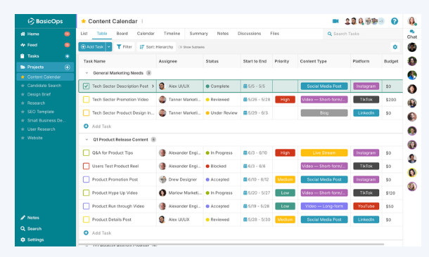 BasicOps is an all-in-one team collaboration and project management platform designed to centralize communication, tasks, and workflows into a single workspace. It brings together chat, channels, task management, documents, and file sharing so teams can work without switching between multiple tools, reducing distractions and duplicated work. Conversations are directly connected to tasks, files, and projects, allowing users to comment, collaborate, and track progress in context rather than across disconnected apps. Teams can create projects using templates, build task lists with priorities, subtasks, and dependencies, and assign responsibilities while maintaining visibility over deadlines and schedules. It includes real-time feeds and notifications that keep users updated on activity, mentions, and task changes, ensuring alignment across the team.