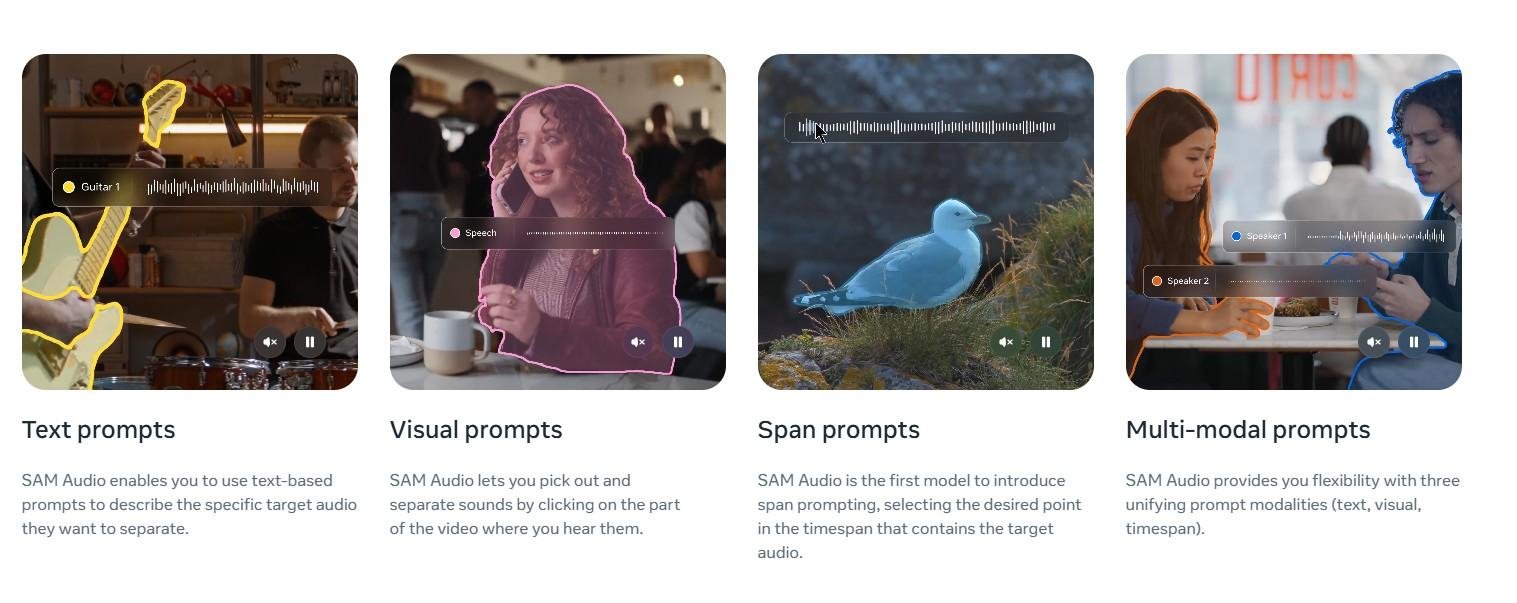 SAM Audio is a next-generation AI model for detailed audio segmentation and editing. It lets users isolate specific sounds from complex audio mixtures using intuitive prompts that mimic how people think about sound. You can type descriptive text (like “remove dog barking” or “keep vocals only”), click on objects in a video to pull their associated audio, or mark specific time spans where target sounds occur — all in one unified system. SAM Audio is available for experimentation and integration through Meta’s Segment Anything Playground platform, where users can upload their own audio or video files and instantly try SAM Audio’s capabilities. It’s also downloadable for use in custom audio and research workflows. Unlike traditional audio tools that focus on single, narrow tasks, SAM Audio supports multiple kinds of prompts and real-world sound environments with high accuracy.