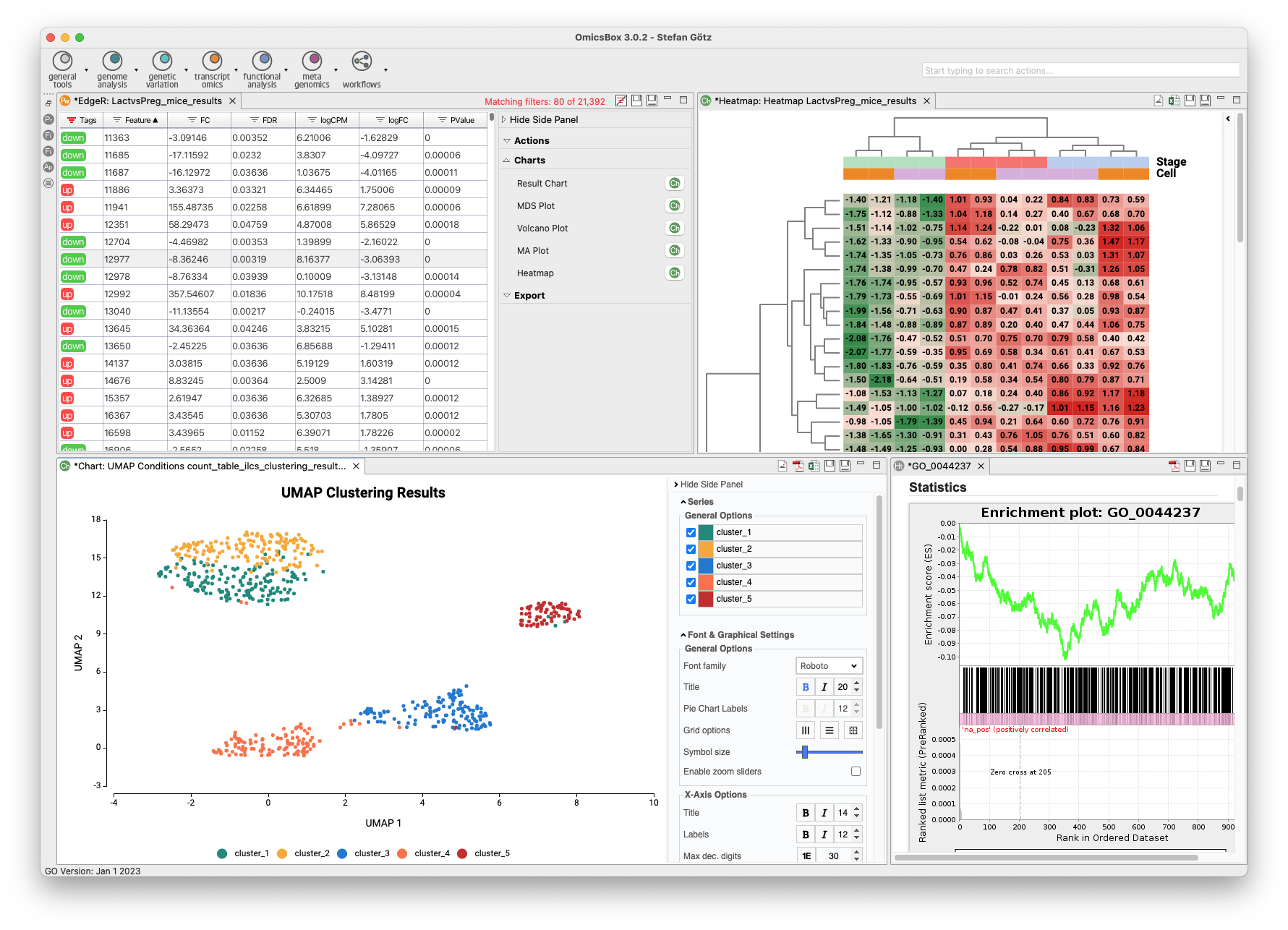 The software is structured in different modules, each with a specific set of tools and functions designed to perform different types of analysis, such as de-novo genome assemblies, genetic variation analysis, differential expression analysis, and taxonomic classifications of microbiome data, including the functional interpretation and rich visualizations of results. The functional analysis module includes the popular Blast2GO annotation methodology and makes OmicsBox particularly suited for non-model organism research