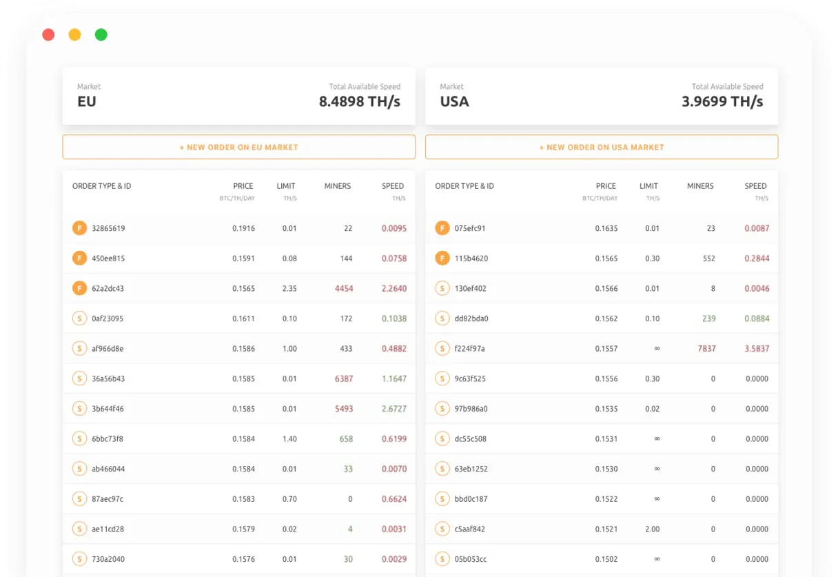 NiceHash offers cloud mining services that allow youto pay for hash power and mine in the cloud. NiceHash also offers Bitcoin mining software where you can connect your GPU/CPU & start earning Bitcoins. NiceHash also offers their own crypto exchange. Exchange fiat to crypto or just crypto to crypto. Use our live trading interface with advanced trading options and API. Rent out massive hash-power and forward it to worlds biggest mining pools. We support wide range of pools! NiceHash mobile app is an app that lets you manage your NiceHash account and your activities. NiceHash Private Endpoint solution is designed for medium-sized and large mining farms that want to optimize their connection to NiceHash and secure maximum performance and earnings. With regular payouts, great customer support, high-end security, system stability and by delivering massive amounts of hashing power, NiceHash has rapidly developed into a well-known brand among cryptocurrency miners.