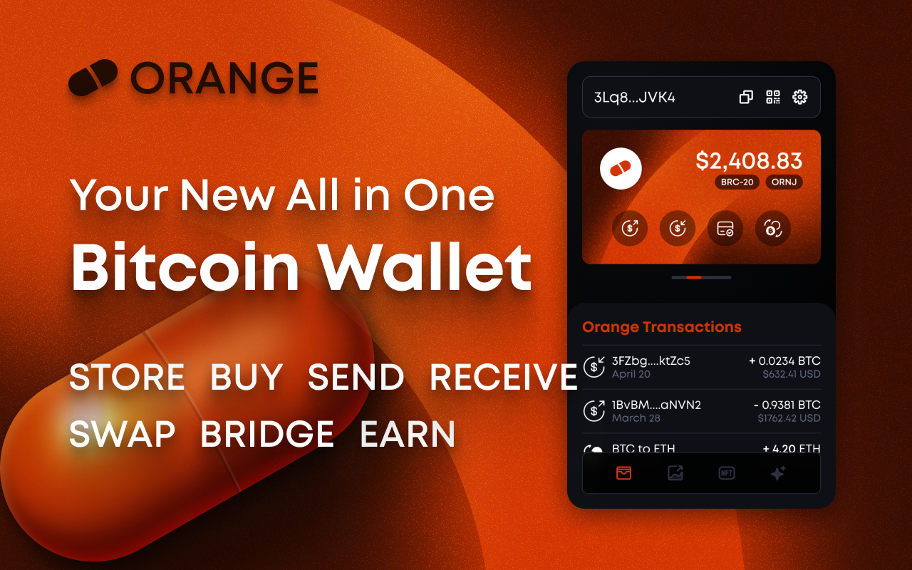 Orange Wallet is a software wallet in a browser extension that helps you access and manage your Bitcoin, BRC20, Stacks, and Ordinals NFTs. Orange is integrated with the Orange Assistant and artificial intelligence to quickly access information and insights regarding the entire crypto industry. Besides being easy to use, the Orange is completely decentralized, non-custodial, and anonymous. It is your gateway to access the Bitcoin blockchain without involvement from any third party. Only you can access your private key, your Bitcoin is stored on the blockchain, and no personal information is ever collected in the decentralized application (DAPP). The Orange wallet supports storing multiple protocols, including BRC20, Ordinals, Stacks, and the native Bitcoin protocol.