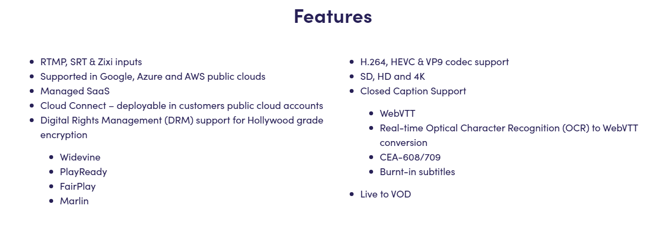 Bitmovin has been a first mover in almost every significant development in online video, from building and deploying the world’s first (and fastest) commercial adaptive streaming (MPEG-DASH/HLS) HTML5 Player, to being the first to achieve 100x real-time encoding speeds in the cloud. Bitmovin provides HEVC as well as VP9 live streaming with 60FPS and 4K resolution and built the first containerized video encoding solution with Docker and Kubernetes. Bitmovin products are completely in-house developed, easy and fast to integrate and highly customizable. In combination with our great support, documentation and SLAs, this is a true enterprise offering.