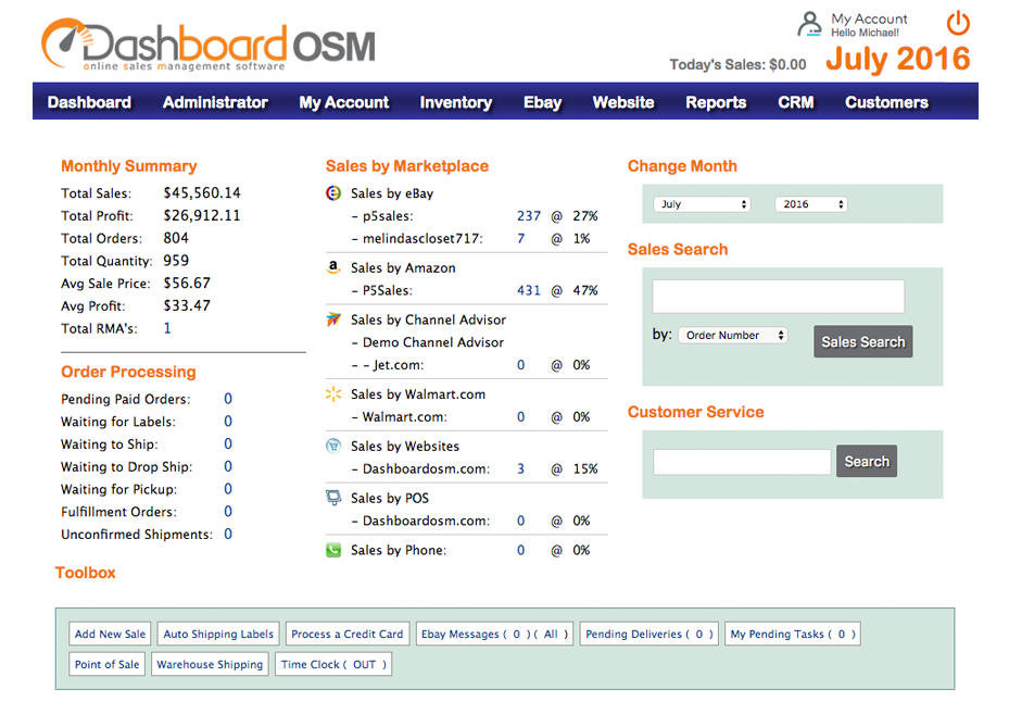 Order Management, Quickbooks Integration, Shipping, CRM, ERM, Warehousing & more all in one convenient place. Grow your business today. We connect sales, customer service, orders, shipping, employees and operational systems to save multi-channel enterprise companies tons of time and grow the business. We revolutionized the industry of streamlined on-line sales management by providing the tools you need to succeed. See why there is no other choice but Dashboard OSM. Stop fumbling around with multiple websites and software to accomplish one goal, when all you have to do is use one. Dashboard OSM brings everything together in one convenient place. Save time and energy, switch today!