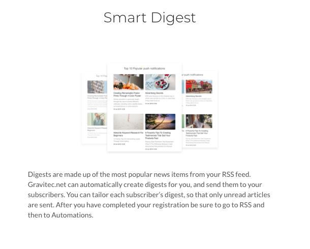 Advanced features for subscription prompts, automated notification based on RSS feed, drip campaigns to introduce new subscribers to your site, and a unique push digest of your popular news are waiting for you.
