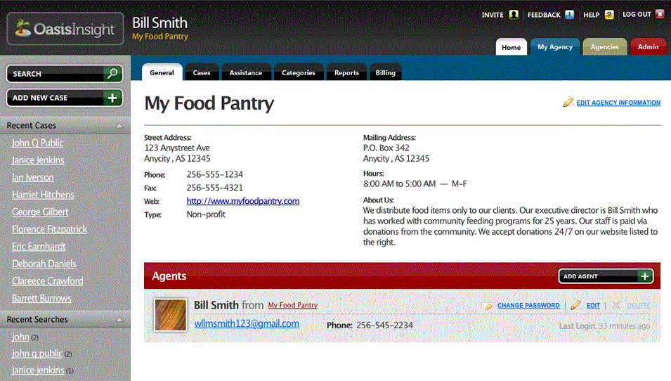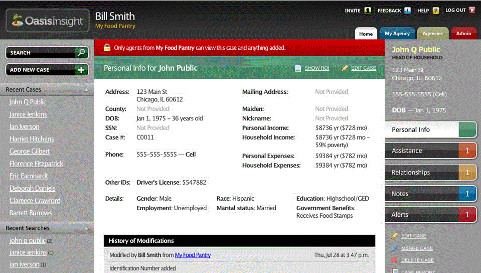 Easily manage SNAP outreach with Oasis Insight, a cloud-based client intake, and reporting solution. Oasis Insight features 256 bit SSL security, which is the same level of security as online banks. Oasis Insight enables users to generate detailed reports of community demographics. Oasis Insight allows users to record assistance, alerts, notes, and relationships on every case.
