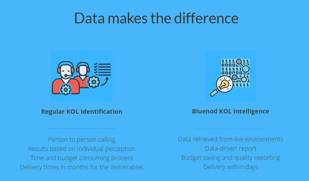 Obtain a detailed profile of each Key Opinion Leader (KOL) and identified stakeholders with contact details and a general description of their activities. Collect the social profile of people active in the community of interest to target them with specific content. Have an overview of interactions through a comprehensive mapping of the community of interest. Bluenod provides valuable information to the healthcare industry by mapping therapeutic areas according to disease or medical fields. In particular, the pharmaceutical industry requests our services to inform pre- and post-launch efforts. Media organizations can boost the promotion of their content by targeting influential actors. Political organizations can pinpoint the main actors in their influence network to engage with them. Whether to inform on pre- and post-launch phases of a product release or to engage with powerful customers, Bluenod reports support the largest companies in their community of interest.