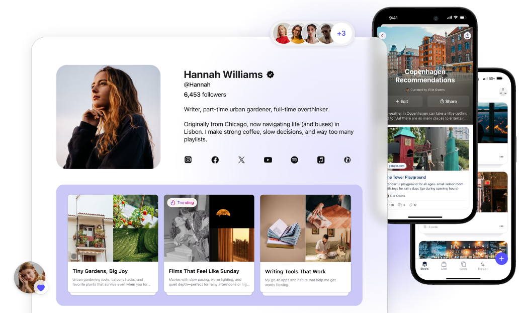 Individuals and communities wanting a solution to collect, organize and share diverse online content through intuitive, curated lists