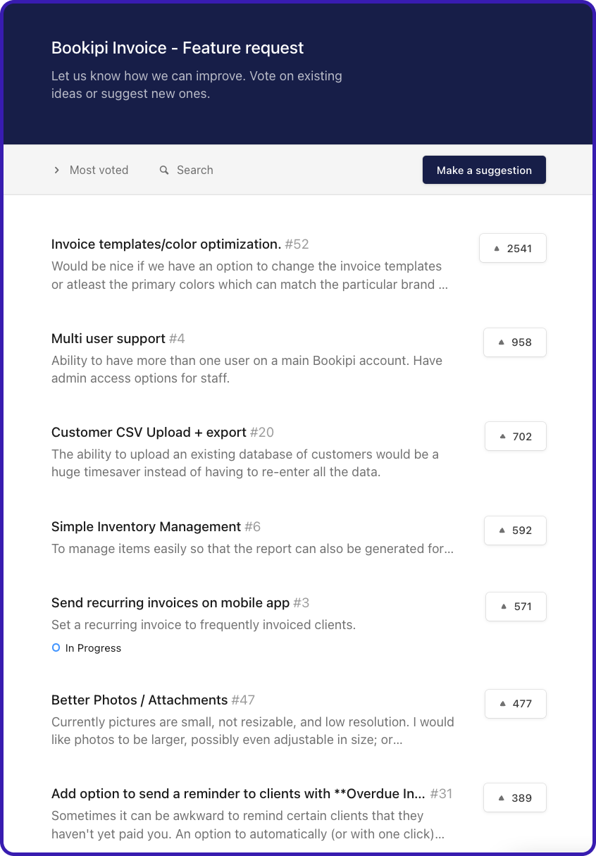 As a small business owner, your money is precious. With Bookipi, save money when you use our free invoice maker to bill for your work. Join the 700,000 business owners sending over $3B worth of invoices for FREE every year. Your time is your most important asset and you should be spending it building your business – not bookkeeping. Our time-saving features will get you out of the books and back in your business. Save your customers, items, invoices, estimates and let your customers pay you via credit card. Getting paid on time is one of the biggest problems for small business owners everywhere. With our invoice app, Bookipi makes sure that you don’t miss out on any critical information that will stop you getting paid. We also have automatic overdue reminders for clients that forget to pay you.