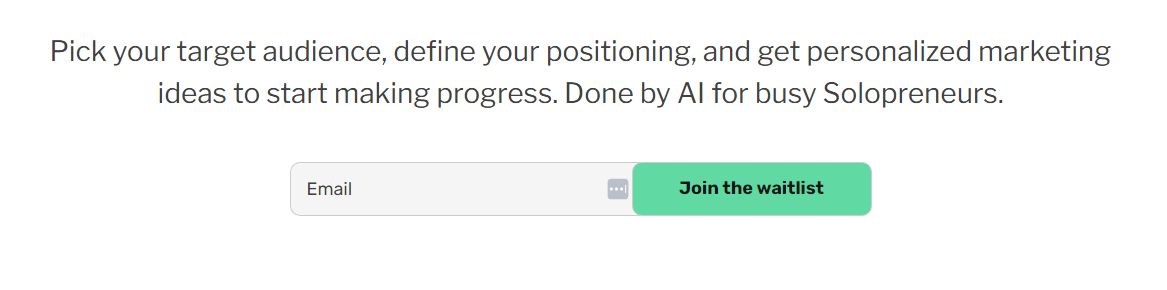 Generate the entire Marketing Strategy in 10 minutes. Pick your target audience, define your positioning, and get personalized marketing ideas to start making progress, done by AI for busy solopreneurs.