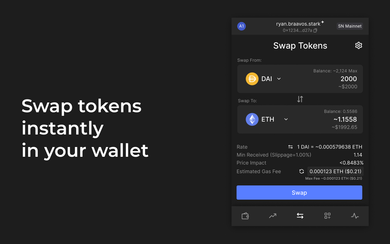 With support for various tokens, Braavos Wallet allows users to securely store, manage, and trade their assets in one place.