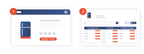 The most efficient buyer’s journey for brands. Benefit from free qualified traffic to your physical and online points of sale. A 100% free solution to capture intentional traffic, communicate your offers, and highlight your services. Brands rely on a wide range of digital media (company website, display ads, videos, social media ads, marketing, etc.) to enhance the value of their products and positioning. These communications generate traffic for your points of sale. Geolocation, contact details for points of sale, product availability, pricing, business hours, etc. We enhance the digital communications of brands with useful information that simplifies the consumer’s decision and sends them to your points of sale. Click & collect, delivery, home installation, refund policy, extended warranty, etc. All the services that enhance your positioning and allow you to help your clients can be displayed using our tool.