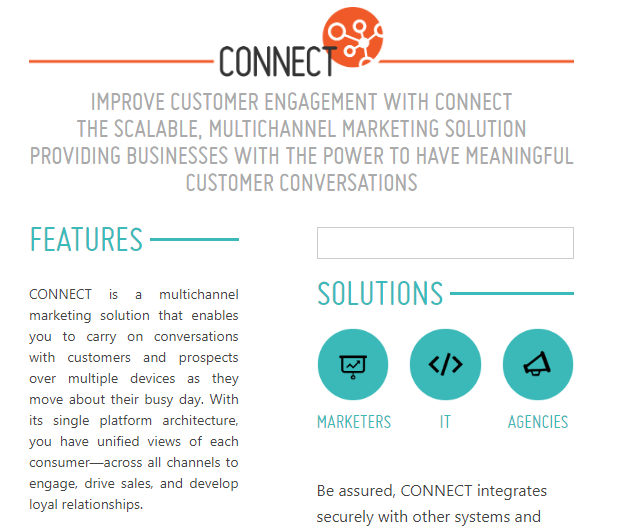 Brick Street CONNECT is a multichannel marketing solution that enables you to carry on conversations with customers and prospects over multiple devices as they move about their busy day. With its single platform architecture, you have unified views of each consumer—across all channels to engage, drive sales, and develop loyal relationships. By overseeing your customer interactions collectively, it shifts your focus from individual tactic metrics to overall engagement metrics. Thus uncovering the total amount of time your customer actively spends with your brand. The in-depth customer profiling provided by CONNECT, gives you an opportunity to be extremely responsive to customer behavior and preferences without adding staff or other resources. Modular platform adapts to the ever-changing and evolving digital communication channels without disrupting IT departments or impede marketers’ responsiveness to customers.