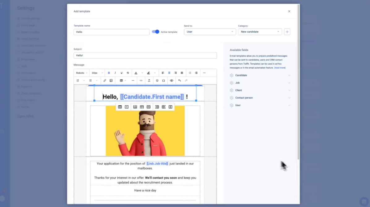 TRAFFIT is THE cloud-based applicant tracking system for HR departments and recruitment agencies. Its features allow for the electronic handling of every step of the recruitment process - from publishing job advertisements, managing applications, and analyzing performance via detailed reports, to communicating with and winning the best candidates. TRAFFIT offers several different integration opportunities such as email, calendar, and social media - and an API that allows for exchanging data between systems. TRAFFIT also includes the Career Page Generator - a tool that allows for the announcement of current vacancies on company websites without engaging the IT team. TRAFFIT is fully compliant with the GDPR, and as such it's trusted by a growing number of successful companies - both corporate and small business. TRAFFIT saves you time, effort, and money.