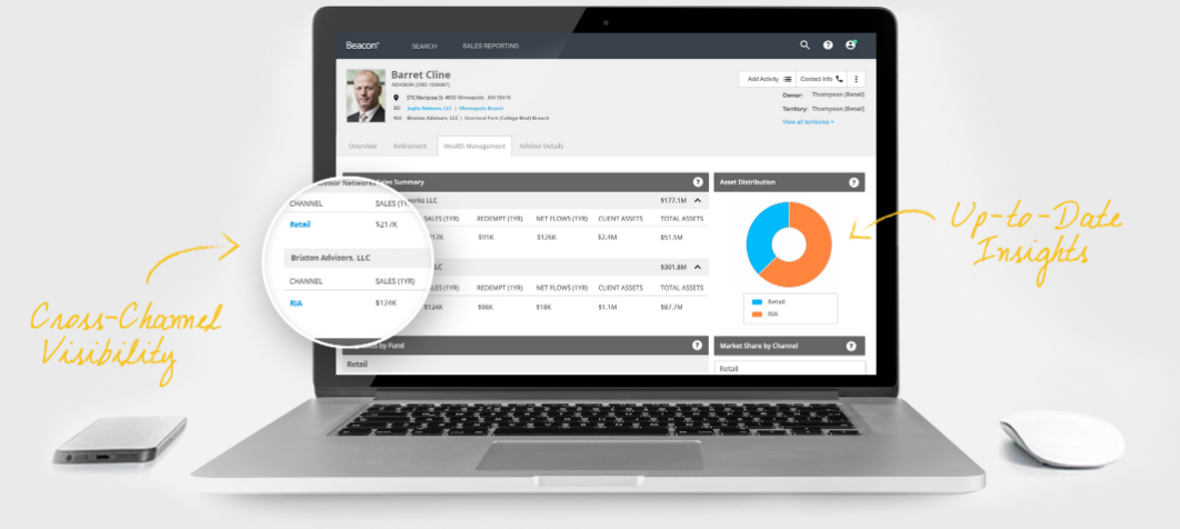 With BrightScope, asset managers transform the way they see, understand, and leverage their data to drive more targeted and effective distribution efforts. Experience the benefits of a single, integrated solution across DCIO, retail, and RIA channels and watch sales efforts skyrocket. Shorten sales cycles with up-to-date insights into what products an advisor is using today, how utilization is changing over time, and where new opportunities exist for your products. See the most relevant and actionable data specific to you and your team. Quickly understand assets, flows, and market share by territory, product, platform, advisor, and more. Through the advanced integration of data from internal sources, third-party sales files, and market intelligence across all major distribution channels, BrightScope's comprehensive solutions help asset managers distribute products more effectively. Make faster, data-driven decisions armed with up-to-date, comprehensive, and actionable insights.