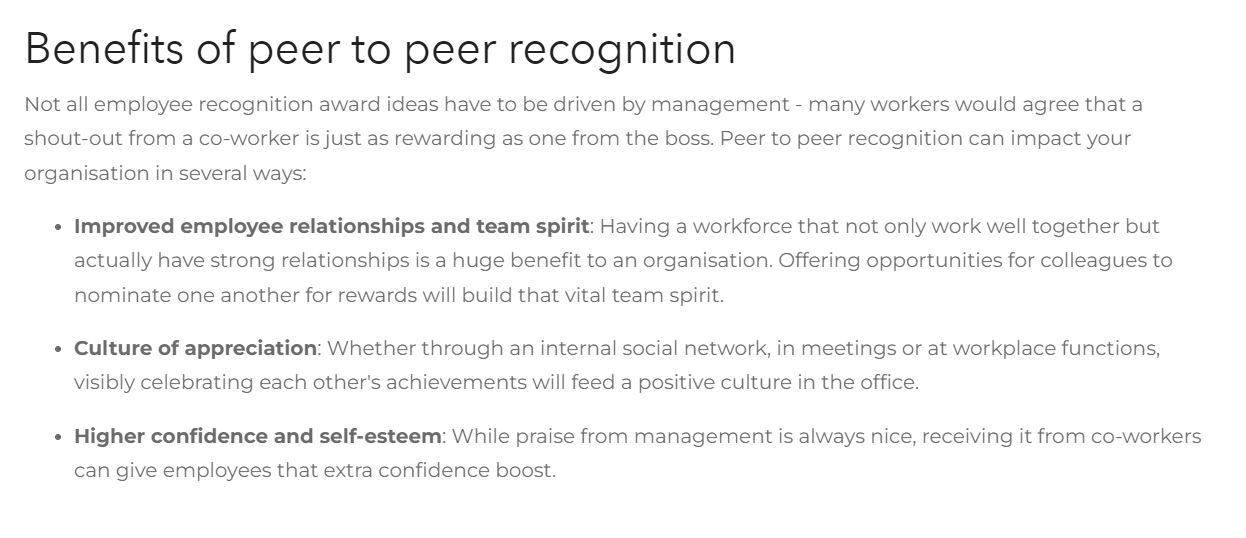 When you think about employee recognition programs, chances are what comes to mind is a solution where management identifies and rewards high performance among the workforce. That's certainly an important element of the system, but for a more fun and collaborative option, have you considered peer to peer engagement? P2M® offers a range of employee rewards and recognition ideas, and we have observed the immense value of allowing colleagues to nominate and celebrate one another. When investigating your new employee recognition program, adding a peer to peer element is a compelling choice. Having a workforce that not only work well together but actually have strong relationships is a huge benefit to an organization. Offering opportunities for colleagues to nominate one another for rewards will build that vital team spirit.