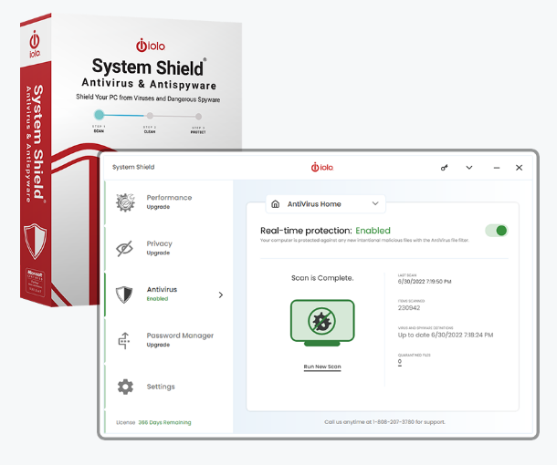Eradicate stubborn PC pests and block future infections without system slowdown. System Shield is more than an antivirus system, it provides certified protection while maintaining maximum PC performance, so you can shop, bank, and socialize online without the threat of spyware, viruses, and other threats. Antivirus shield finds and removes stubborn and dangerous PC infections, and permanently protects your system from all future attacks. Protects without unnecessary add-ons or background activities—and nearly zero resource consumption. Finds and exterminates computer pests and parasites, restoring system stability and freeing up resources. Uses revolutionary technology to ensure real-time threat protection without interruptions. provides an invisible suit of armor for your PC that instantly nullifies external attacks in real-time.