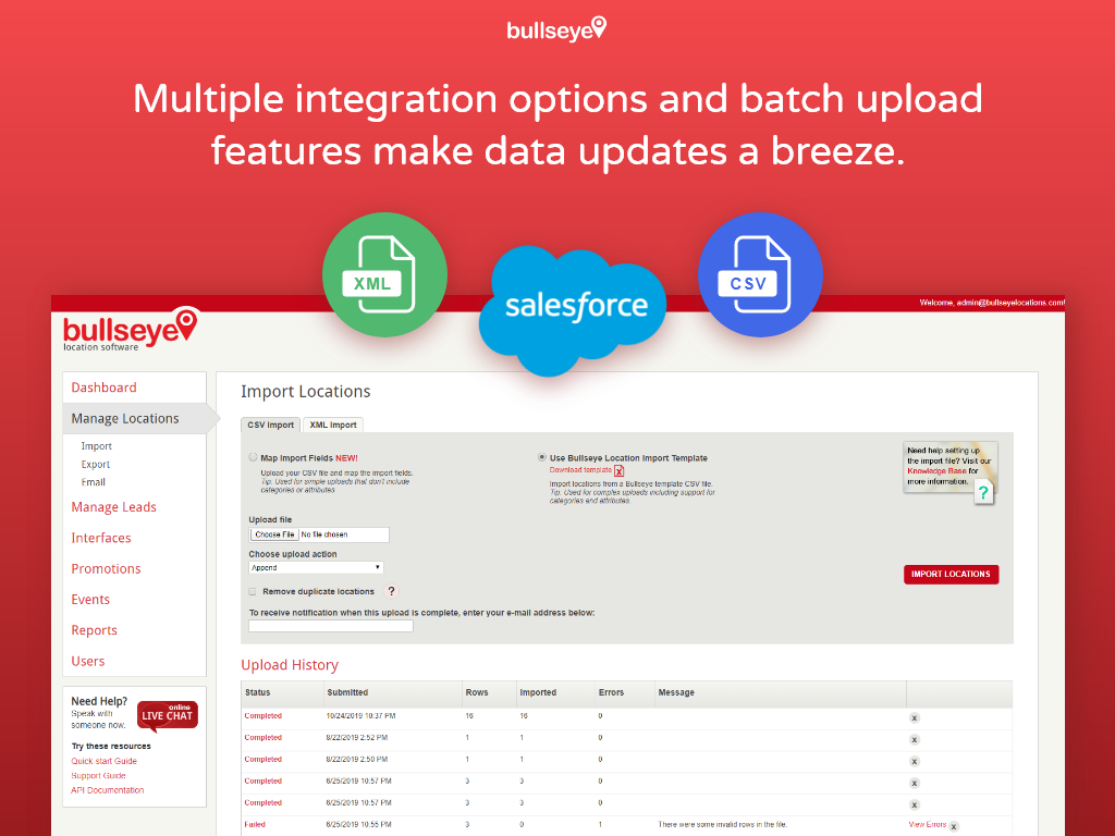 With 20 years of experience, Bullseye includes all the features you'd expect from a modern locator: user-friendly search interfaces, a robust API, in-depth reporting, 3rd-party integrations, and extensive tools to manage locations, users, categories, and custom data fields. It's a comprehensive solution to manage all your location data and drive customers to stores, dealers, agents, and more.