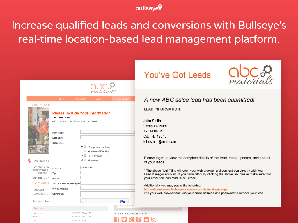 Bullseye is the visionary store and dealer locator platform that wins more customers. Beyond just a standard locator, Bullseye enables companies to engage customers with local content, increase lead capture, drive traffic, and improve relationships with dealers, agents, and other partners.