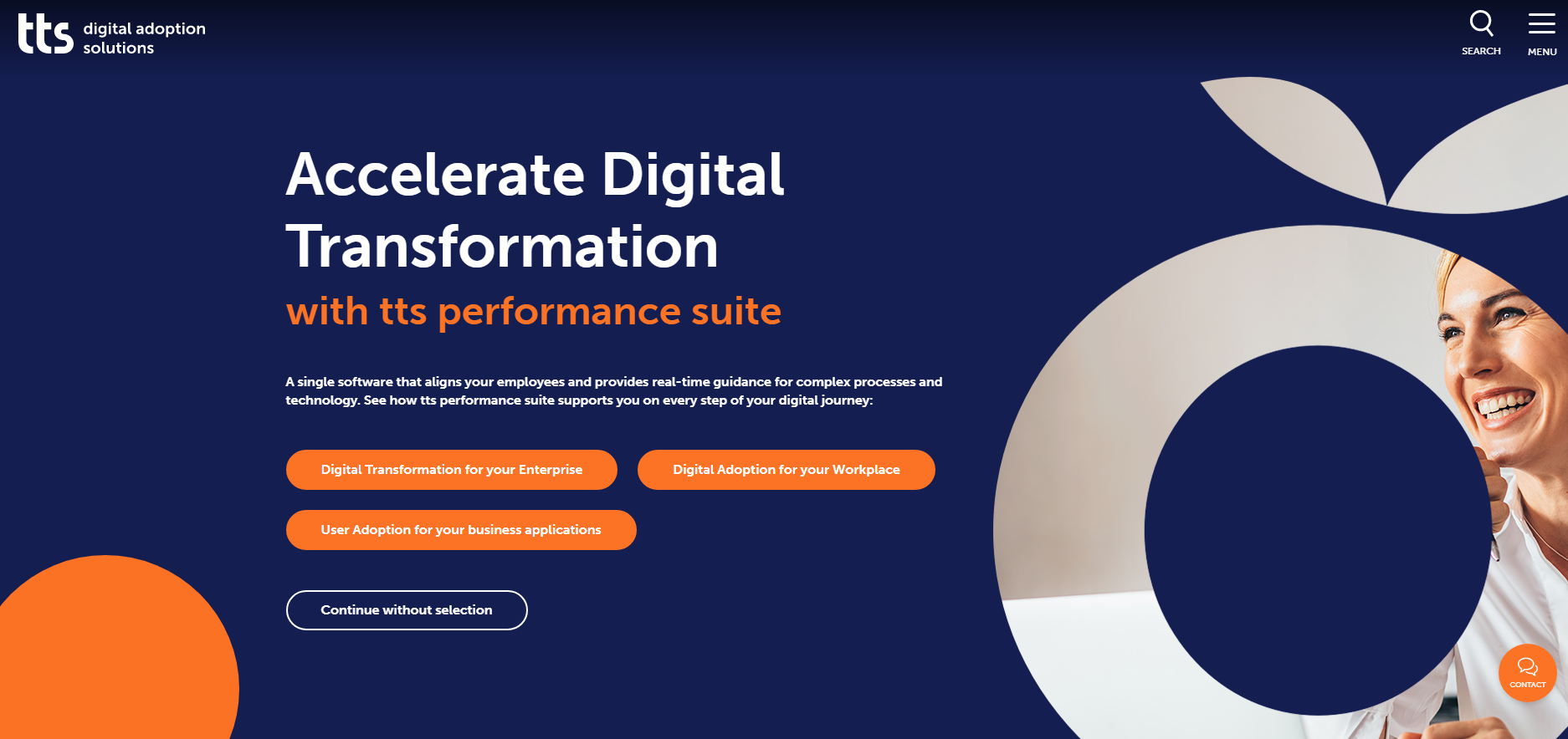 tts provides corporate digital user adoption and learning solutions which, by enables rapid adoption of complex processes and supporting technologies from SAP, Oracle, Salesforces, ServiceNow, Microsoft 365 and many others. This help companies move away from stockpiling knowledge and, instead, rely on “learning on demand” and performance support of the entire organisation whilst also shortening the time to derive a return on technology investment.