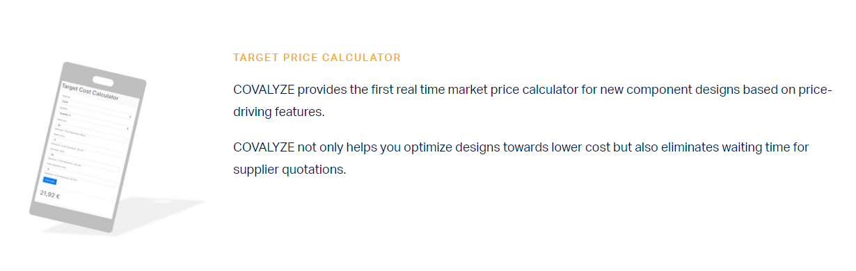 COVALYZE optimizes your whole strategic procurement process - from demand management to RfP comparison. With COVALYZE you get a much better category data set including all technical business specification in a structured format. By combining detailed business specifications with supplier prices you will get new insights into your category data, e.g. what business features are driving the price in your category, how can I reduce article variants and many more .- Book a free demos session! COVALYZE is a platform for OEMs and enterprise manufacturers needing to drive down costs of sourced components and services whilst accelerating time to market. COVALYZE provides relevant inputs to your negotiations in one place. Price of component features, overpriced parts, high-price suppliers, you all name it.