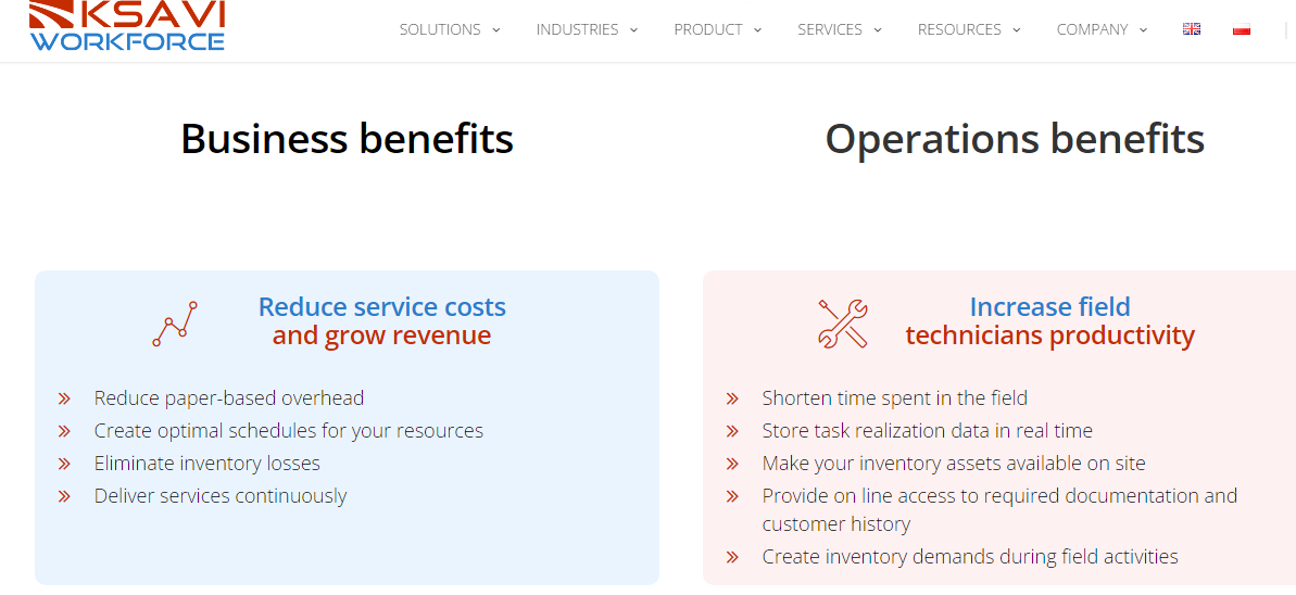 Ksavi Workforce field service management offers a solution for improving employee productivity, lowering operating costs and increasing profitability in organizations delivering services in the field. Our software enables real-time connectivity between the service center and mobile workers boosting the number of jobs done per day. Optimal job scheduling connected with mobile asset management increases customer satisfaction keeping the company's reputation on high level. Shorten time spent in the field. Store task realization data in real time. Make your inventory assets available on site. Provide on line access to required documentation and customer history. Create inventory demands during field activities. Capture valuable customer feedback. Keep track of appointments to meet your commitments. Always send fully qualified and equipped employees to service your customer. Manage your requests with SLA support.