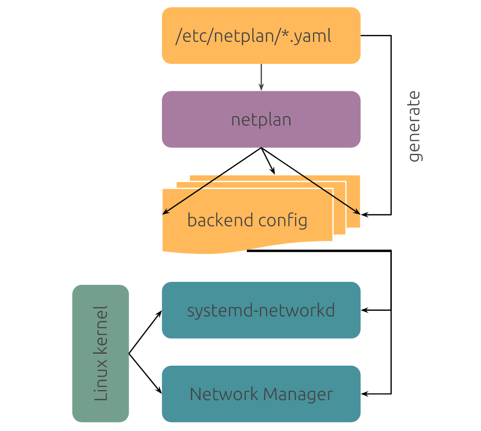Netplan is a utility for easily configuring networking on a linux system. You simply create a YAML description of the required network interfaces and what each should be configured to do. From this description Netplan will generate all the necessary configuration for your chosen renderer tool. This will make NetworkManager manage all devices (and by default, any ethernet device will come up with DHCP once carrier is detected). Netplan reads network configuration from /etc/netplan/*.yaml which are written by administrators, installers, cloud image instantiations, or other OS deployments. During early boot, Netplan generates backend specific configuration files in /run to hand off control of devices to a particular networking daemon.