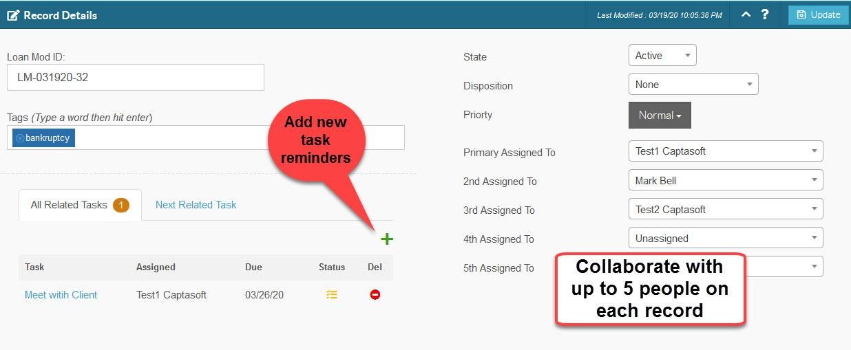 Captaloans Mortgage and Loan Modification CRM combines robust yet simple loan modification, mortgage, and debt settlement tracking. Collaborate with affiliates, processors and attorneys remotely and efficiently.