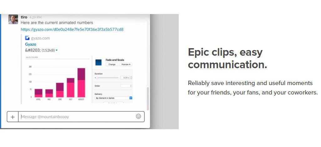 Take screenshots, GIFS, and replays that are ready to share. Save what's on your screen without missing a moment. After you capture we upload and copy a unique link that's private but ready to paste & share instantly. Reliably save interesting and useful moments for your friends, your fans, and your coworkers. Every capture is saved to your account together with its details. Get Gyazo Pro to search and organize all your captures fast. A screenshot or GIF is the perfect way to grab what you see. New screenshot links are copied and ready to paste so you can instantly share anywhere. Sometimes text can miss the point or just take too long to explain something. Send a screenshot or screen GIF and your message is crystal clear. Everyone wants more content for their blog, social media, and website. Capture and edit in seconds to create powerful visual content you can post instantly. Everything you capture is privately tagged for you so it can easily be found.