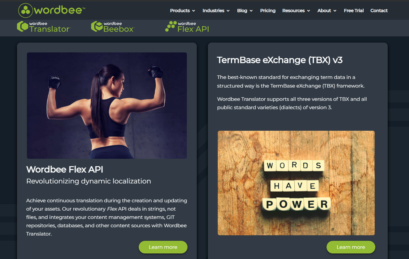 The best-known standard for exchanging term data in a structured way is the TermBase eXchange (TBX) framework. Wordbee Translator supports all three versions of TBX and all public standard varieties (dialects) of version 3. Achieve continuous translation during the creation and updating of your assets. Our revolutionary Flex API deals in strings, not files, and integrates your content management systems, GIT repositories, databases, and other content sources with Wordbee Translator. Wordbee Translator is one of the most advanced translation management solutions on the market. It is a leading choice among translation professionals all over the world, across every imaginable field, including life sciences, games, software, and language-service provision. Wordbee has been vital in helping localized content go global.