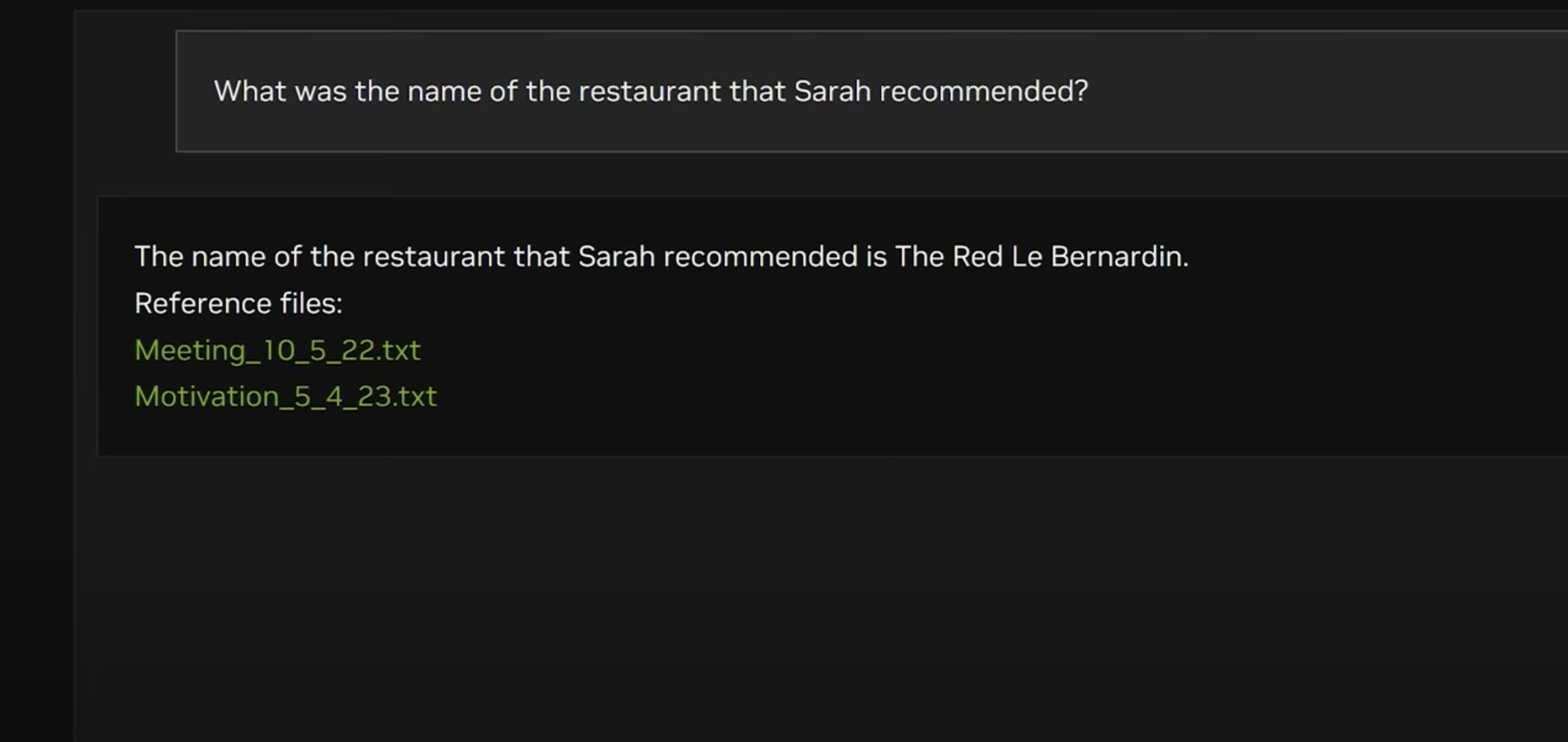 ChatRTX is a demo app that lets you personalize a GPT large language model (LLM) connected to your own content—docs, notes, images, or other data. Leveraging retrieval-augmented generation (RAG), TensorRT-LLM, and RTX acceleration, you can query a custom chatbot to quickly get contextually relevant answers. And because it all runs locally on your Windows RTX PC or workstation, you’ll get fast and secure results. ChatRTX supports various file formats, including text, PDF, doc/docx, JPG, PNG, GIF, and XML. Simply point the application at the folder containing your files and it'll load them into the library in a matter of seconds. ChatRTX features an automatic speech recognition system that uses AI to process spoken language and provide text responses with support for multiple languages. Simply click the microphone icon and talk to ChatRTX to get started.