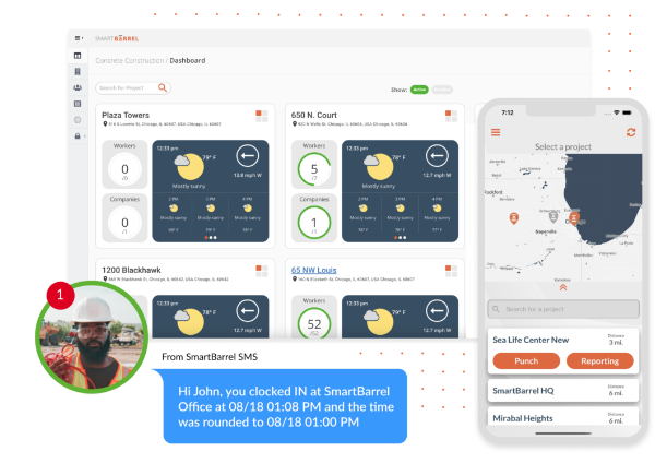 Get better insights into your construction workforce all in one place, with an easy-to-use solution that can be rolled out in less than an hour. Keep track of hours worked by employees, per project, and assign cost codes, all verified by biometric facial verification. Track your manpower easily for a complete view of who is on your job site anytime, anywhere. Increase safety & efficiency, allowing your bottom line to prosper using the easy construction workforce management solution for every job site. Streamline your daily logs for a better construction workforce management experience. Get accurate up-to-date insights from the field for the most in-depth construction workforce management software experience. Ensure seamless, instant communication with workers on site through SMS messaging. Eliminate buddy punching, excuses, and fraud with SmartBarrel’s easy-to-use plug-and-play device. Manage cost codes without the hassle, and ensure your job costing is always on track.