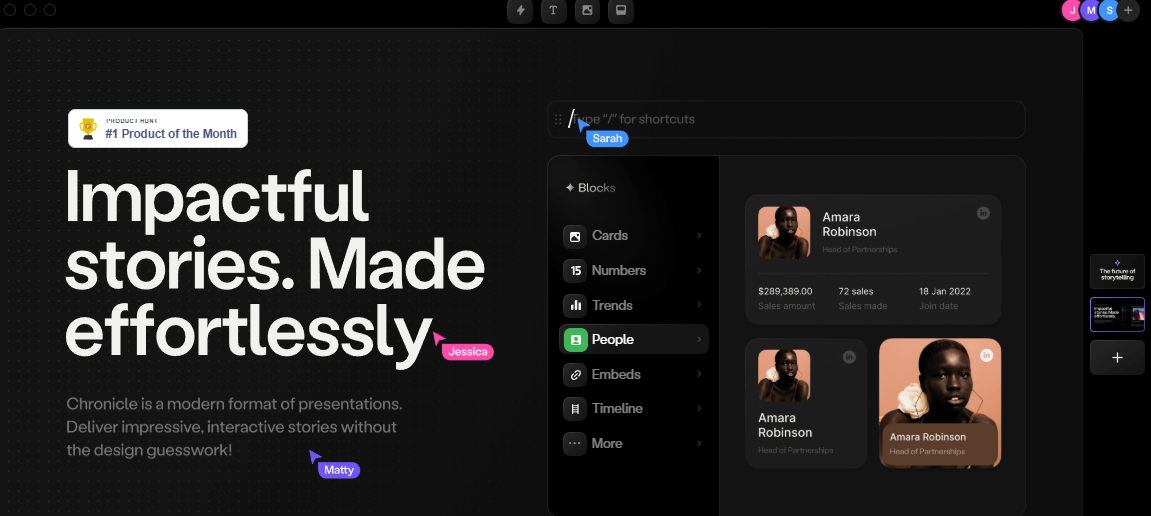 Teams and professionals wanting a tool to build interactive, data-rich presentations in minutes