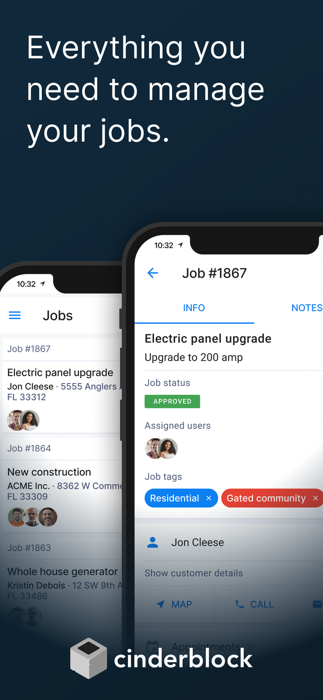 Cinderblock is a job management app for connecting field workers with the office. It was developed for small businesses that need a simple and concise app to keep all information and track jobs execution. It allows you to optimize your business and provide a better service to your customers.