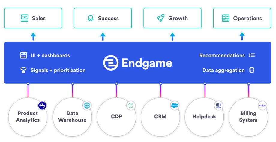 Endgame lets you connect the dots between user behavior and sales opportunities, without expensive data scientists or engineers. GTM teams can’t connect the dots between product usage and sales opportunities. GTM teams with a free plan or trial lack visibility into the behavior of their signups, trial users, and sales opportunities. Revenue leaders waste countless hours figuring out which accounts and users their reps should engage with. Reps don’t know what action will lead to the best outcomes, which results in the wrong action (or no action at all). Take immediate action on prospective and current customers based on real-time data signals. See what top accounts and users are doing in your product, how far along their journey they’ve come, and whether or not your reps should engage with them. Improve the performance of your reps by showing them the prospects and opportunities with the strongest signals.