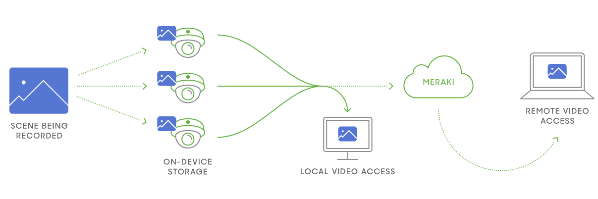 Impossibly simple to deploy, configure, and manage, MV provides reliable security and valuable business insights to organizations of any scale. Secure monitoring and management of all your cameras from anywhere in the world, no extra software required. With video storage and powerful hardware, there’s no need for an NVR or extra analytics packages. Cameras automatically purchase publicly signed SSL certificates and all Meraki management data is always encrypted by default. Novel architecture places video storage on the camera, not cloud, ensuring critical network activities get the bandwidth they need. By utilizing solid-state storage on each camera, the MV family has removed the network video recorder (NVR) and its complexity from the equation. Use WAN bandwidth only when needed. Less than 50kbps of metadata streams to the cloud per camera when footage is not being viewed, eliminating excessive WAN usage.
