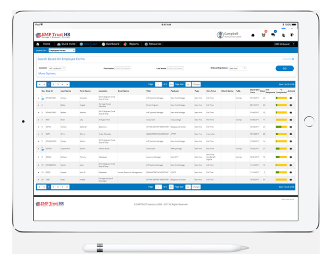 EMP Trust HR is one of the fastest-growing SaaS platforms providing Human resource solutions. We have helped over 600 customers in over 40 countries streamline their onboarding process. Our employee onboarding software is an intuitive platform that provides new hires the tools to complete required forms electronically from any location.