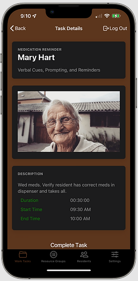 Paper-based service plans are difficult to maintain, and individual tasks are easy and potentially dangerous to miss. Our app makes service plans easy to maintain and automate, provides skilled nursing staff and families a clear view of all upcoming and completed tasks, and ensures service plans are strictly adhered to. In our flagship location, we reduced staff turnover, streamlined service plans and reduced overhead FTE count. Residents are happier and healthier and staff is more informed. Your care providers are given focused view of the tasks scheduled via an App on their device (iPhone, iPad, Android phone, iPod touch). Tasks completed, late, or in danger of being late are displayed on a management dashboard. Our family portal allows authenticated family the ability to view their loved ones service plan, upcoming and completed tasks.