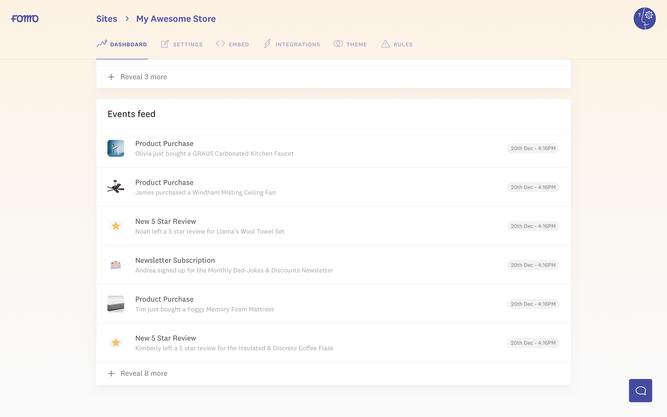 Fomo adds social proof to your website. We built this product because we believe companies are doing marketing all wrong: too many aggressive popups, not enough personal connection. Fomo empowers websites to display recent customer actions (purchases, newsletter signups, whatever) with one line of code. Showcasing important behaviors like these dramatically increases social proof, turning your website into the thriving piece of online real estate that it is.