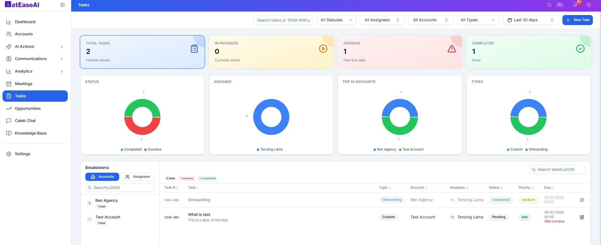 Instead of just showing dashboards, atEaseAI automatically takes action—triggering emails, follow-ups, alerts, and workflows to manage accounts proactively. It detects early churn risks, identifies expansion opportunities, and ensures consistent customer engagement without manual effort.