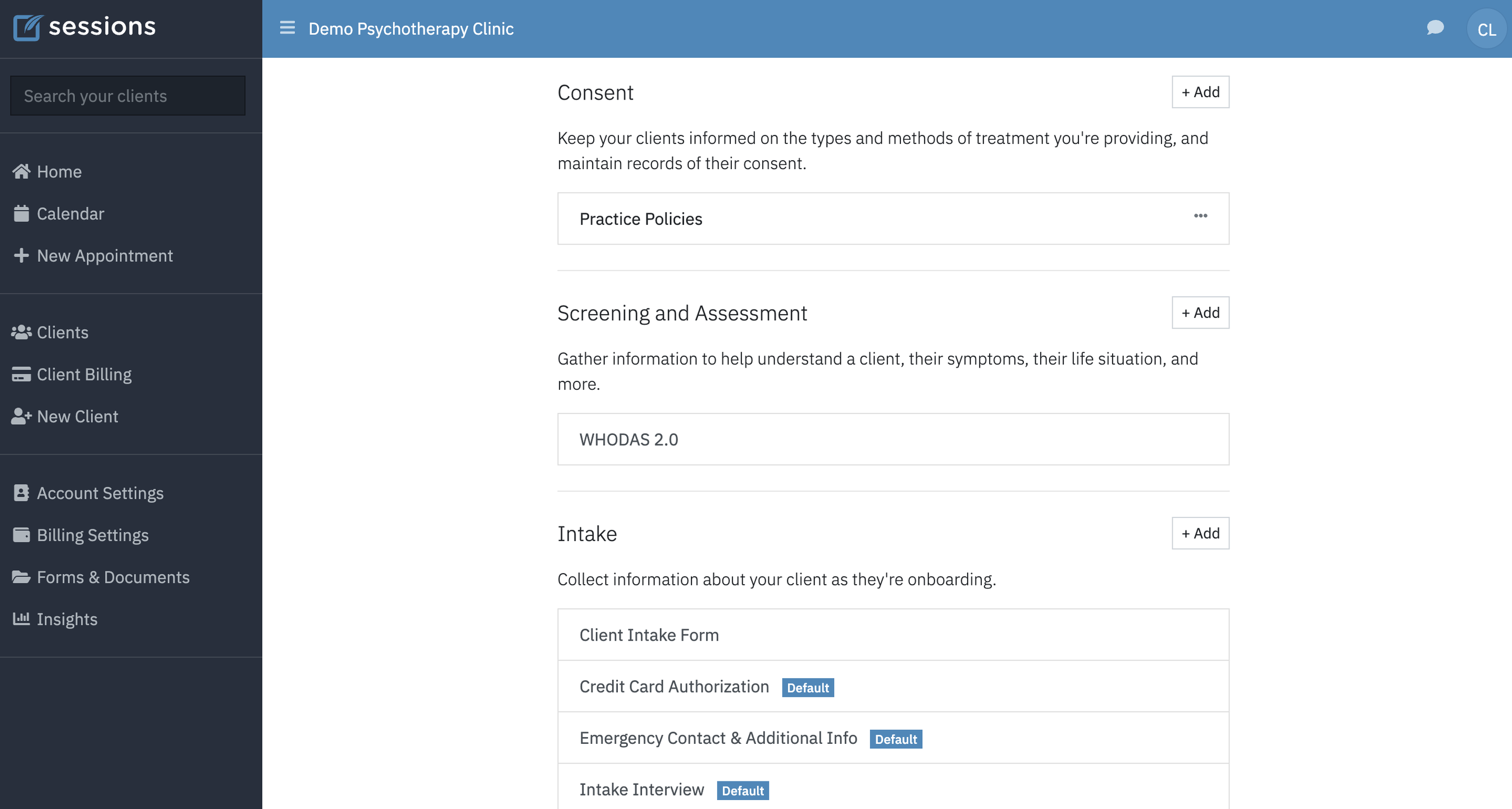 Sessions Health is an EHR for Improving Efficiency and the Therapeutic Alliance. Sessions Health is helping psychotherapists and mental health professionals manage their private practice or clinic and strengthen client relationships. We believe in an elegant and intuitive design that is easy to learn so you’ll be up and running in minutes, not days. Therapists work in unique ways. Your mental health practice management software needs to adapt to you. We give you control to customize everything from notes, to assessments, to reminders and more. We adhere to all HIPAA privacy and security requirements. Sessions Health is friendly for LGBTQ+ clients.