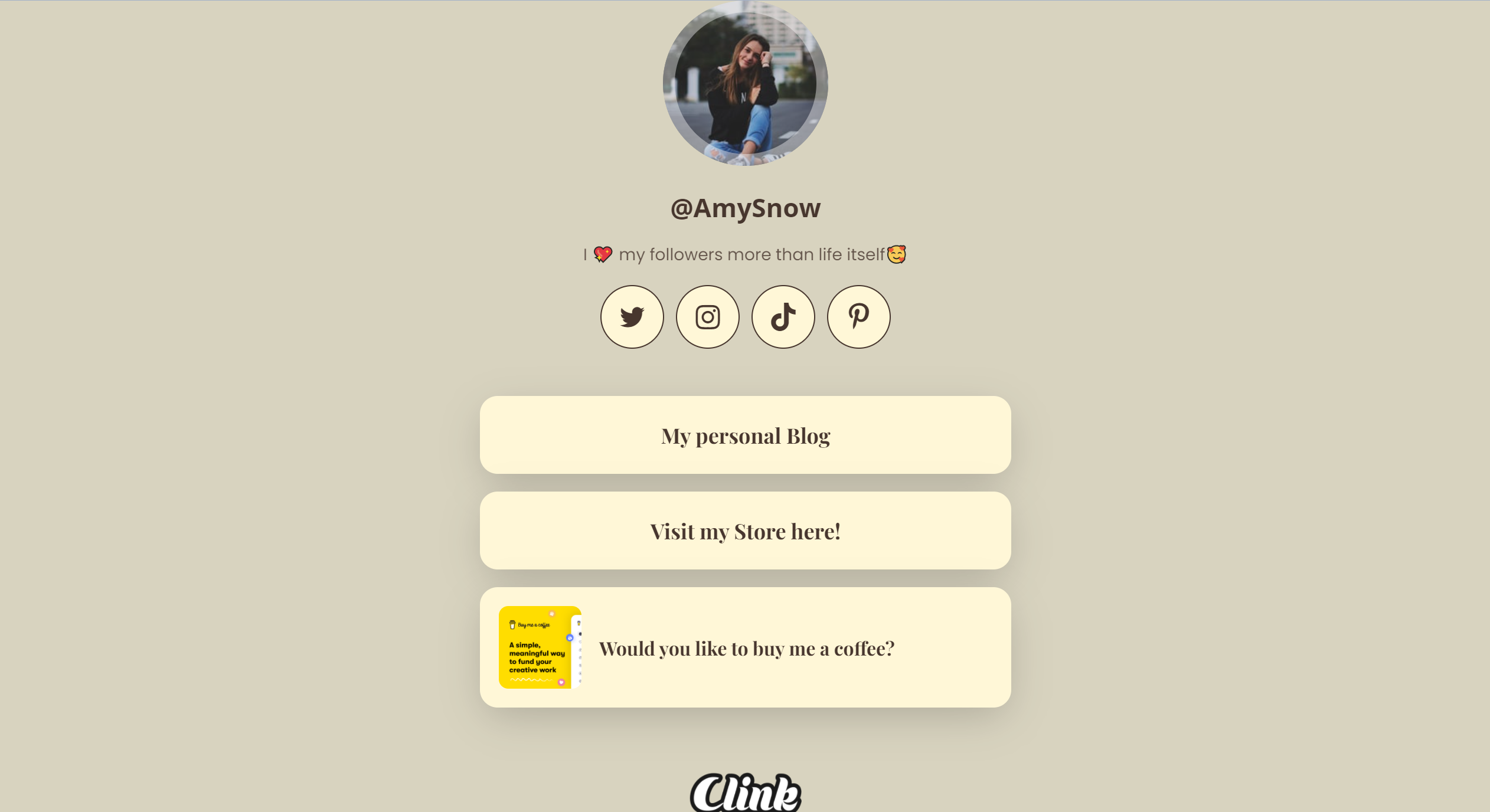 Clink.bio is solving the one link in bio problem for social networks like Instagram, TikTok & Twitter, with the simplest and most efficient way. Users are offered a great and easy to understand click-to-edit interface, which requires no skills to operate, Clink provides all the tools needed to build a stylish and effective bio landing page where you can group unlimited links to your overall Online presence like: a personal website, YouTube videos, IG photos, products, music, startups... & so forth, including all your social media profiles, on top of that it gives you the opportunity to name your new link bio instagram on your brand name or instagram page name, the choice is yours anyway. Rule all your audience with a simple click of the bio link and convert your followers into clients whom will shop your products directly via link in bio, even if you are too lazy for the signups or maybe don't got enough time, a non registration way to achieve your aim is available plus its FREE!