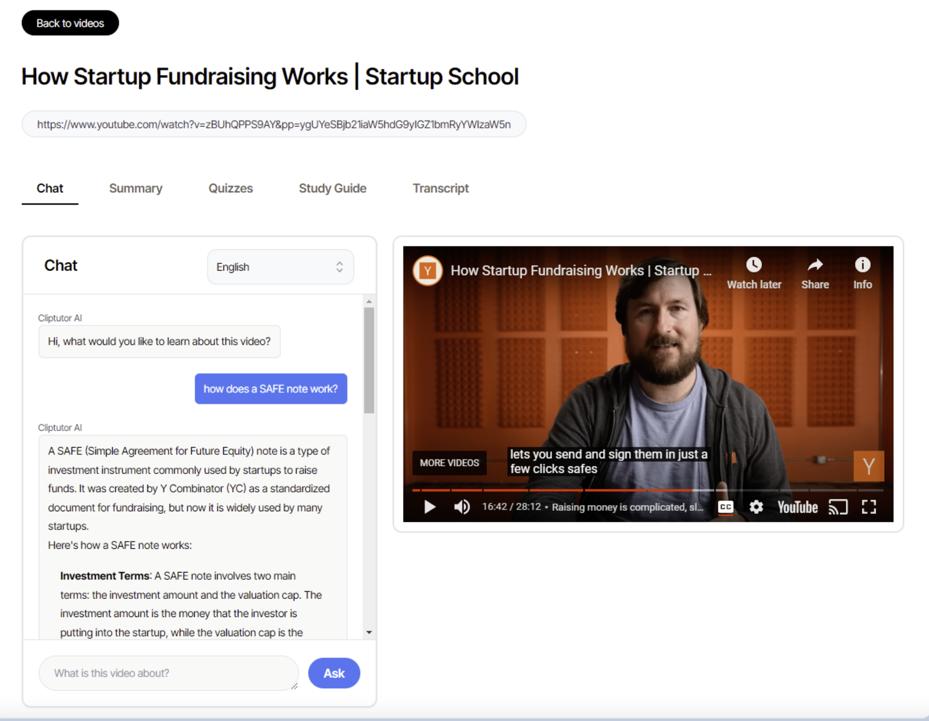 Turn any YouTube video into an interactive learning experience. Chat, ask questions, and engage with fellow learners. Transform knowledge into quizzes and flashcards effortlessly. Integrate with Quizlet and Kahoot to enhance your experience. Generate engaging study guides based on your materials in seconds to accelerate learning. Say goodbye to hours of manual content creation and hello to an intelligent assistant that streamlines your workflow, making your teaching journey smoother, more engaging, and ultimately more effective. Imagine having a personal tutor available for every subject, 24/7, ready to help you learn and excel. Our platform goes beyond traditional learning by leveraging AI to provide personalized, interactive educational experiences.
