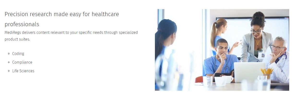 Meet the demands of changing healthcare regulations. The information you need to make critical regulatory, reimbursement, coding, and compliance decisions. The MediRegs medical coding and healthcare compliance platform helps you address multiple challenges facing the industry by providing immediate access to premier, always up-to-date, content and tools. By employing a SaaS workflow solution and innovative integration options, our premier healthcare compliance and risk management software gives you anytime, anywhere access to the regulatory information you need to make the right decisions. MediRegs delivers content relevant to your specific needs through specialized product suites. Stay ahead of changing regulation with precise, authoritative information when and where you need it. Maintain control over your bottom line in the face of regulatory change: ensure accurate, timely reimbursement through accurate, efficient coding.