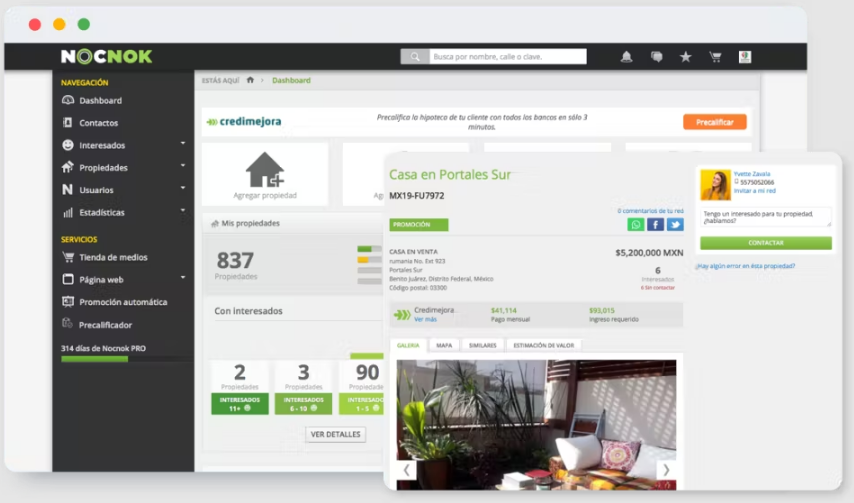 Real estate CRM. Sell and rent more properties in less time. Count on the best, count on us. When registering your properties in our real estate CRM, they will appear in the most recognized and visited portals for the purchase-sale or rental of real estate in the country. Discover Nocnok. Real estate software that promotes and improves the sale and rental closings of your properties. Tools that work for you. Technology that optimizes the time you invest in selling, buying or renting real estate. Join the community of more than 35 thousand real estate agents who trust Nocnok. Easily organize your real estate offers. Simplify property promotion and lead tracking from a computer or mobile device. Try the benefits of this technology for free. The control and dissemination of your properties could not be simpler and more efficient. Maximize your time and increase your income with this CRM that offers you this technology to reach better customers.