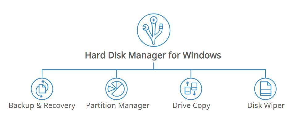 Organize your disks, ensure capacity and performance of storage media. Transfer systems on the fly, use physical and virtual appliances at will. Use professional-grade backup to secure systems, applications and data. Always stay up and running with boot fix and fail-safe system recovery. Advanced users can create more sophisticated scenarios based on the provided set of tools. Define specific backup strategy, migrate system and data, perform secure disk wipes and generate detailed reports. Next-generation partitioning functionality ensures optimal storage use. Your internal drive running low on available disk space? This dilemma often occurs when you have multiple partitions to accommodate different systems and data types. With Hard Disk Manager, you can resize partitions on the fly to maximize available storage capacity. With newly-added features, you also can undelete and merge partitions, edit and view sectors in the built-in hex editor, convert partitions into primary and logical.