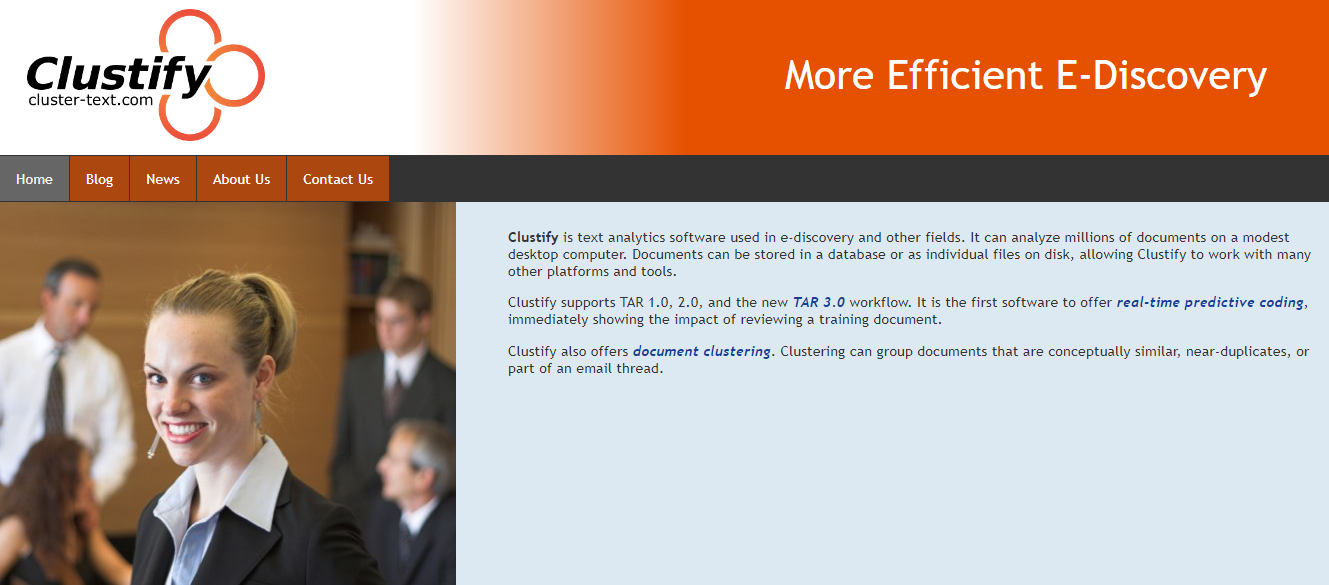 Clustify is text analytics software used in e-discovery and other fields. It can analyze millions of documents on a modest desktop computer. Documents can be stored in a database or as individual files on disk, allowing Clustify to work with many other platforms and tools. Clustify supports TAR 1.0, 2.0, and the new TAR 3.0 workflow. It is the first software to offer real-time predictive coding, immediately showing the impact of reviewing a training document. Clustify also offers document clustering. Clustering can group documents that are conceptually similar, near-duplicates or part of an email thread. Hot Neuron was formed in February 2000 to develop information retrieval technologies and services. The company prides itself on developing innovative methods and algorithms that help people find and organize information that will make their companies more productive.