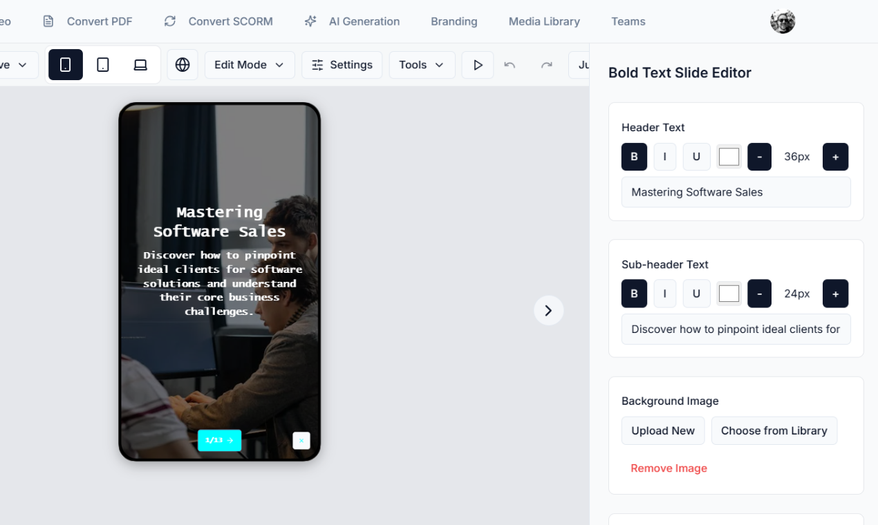 Instructional designers, corporate training teams, and educators who need to create engaging, AI-enhanced microlearning and e-learning content without extensive manual authoring