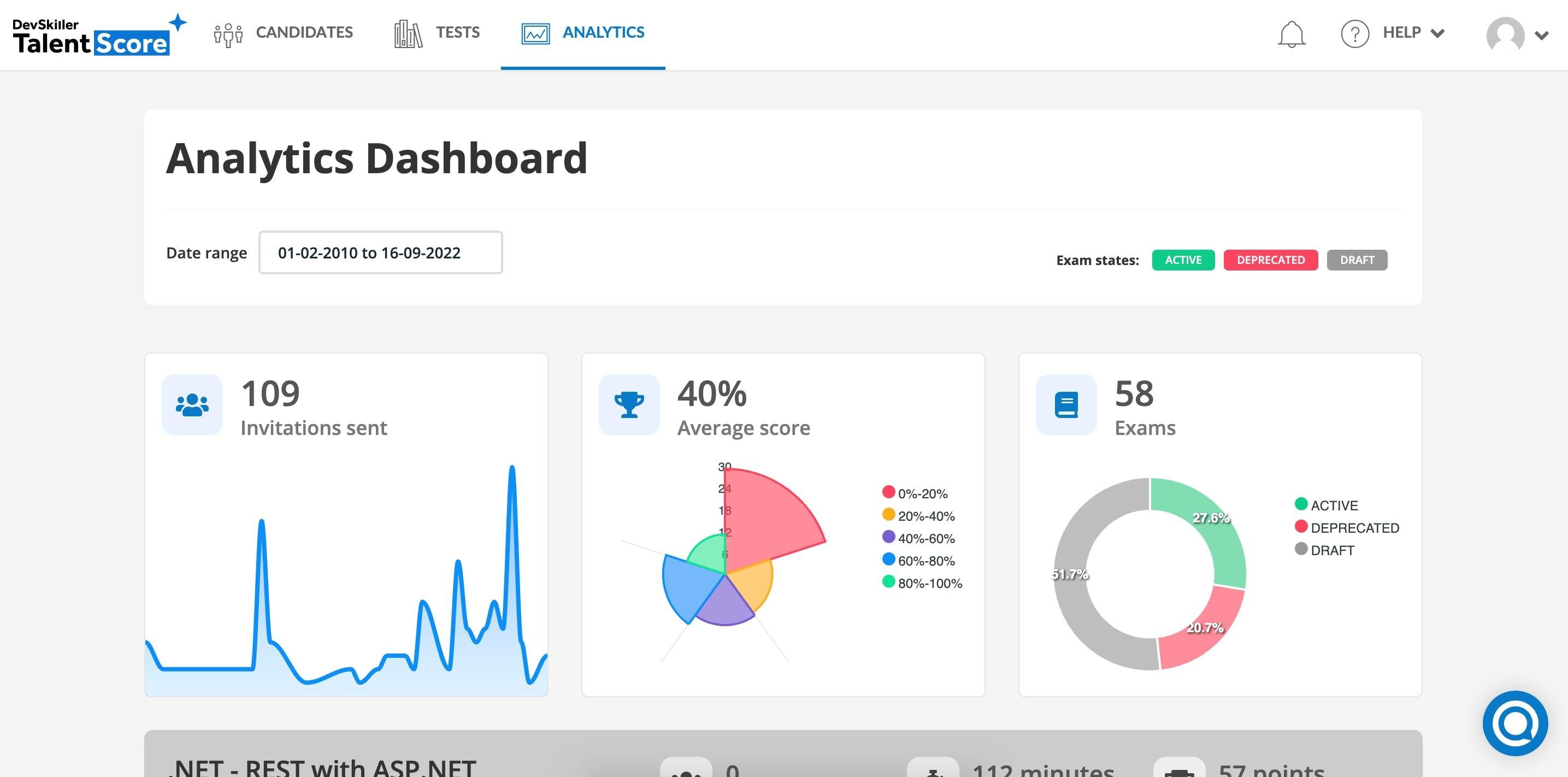 TalentScore supports 200+ tech skills tested for multiple front end, back end, full stack, DevOps, data science, QA, and security roles across all seniority levels.